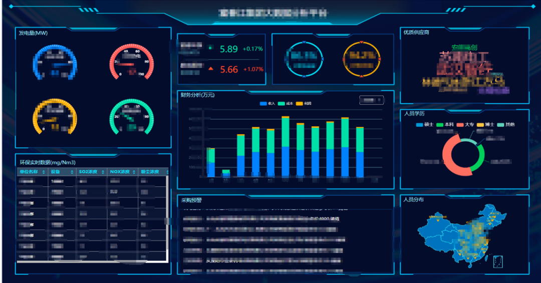 一、重大經營主題。上市公司股價、期貨價、設備運行、環保等實時數據展示,財務、生產、庫存等報表展示,為領導決策提供了依據。