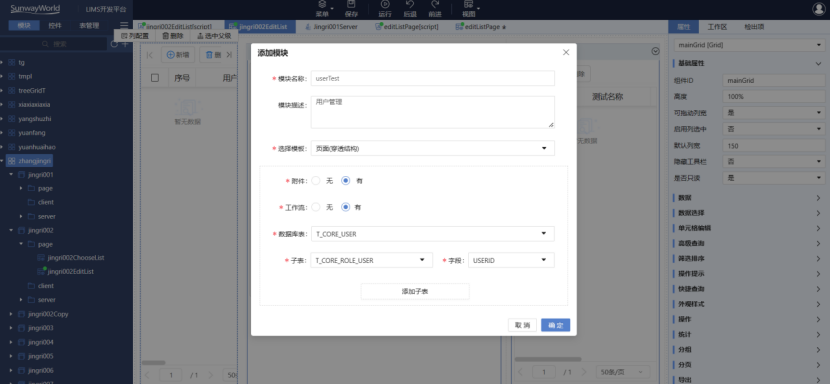 平臺內置豐富的頁面控件,通過拖拽方式即可創建頁面,所見即所得,降低了學習成本,同時內置三維天地自主繪制的UI圖標庫,提升了界面元素的豐富性和美觀度。