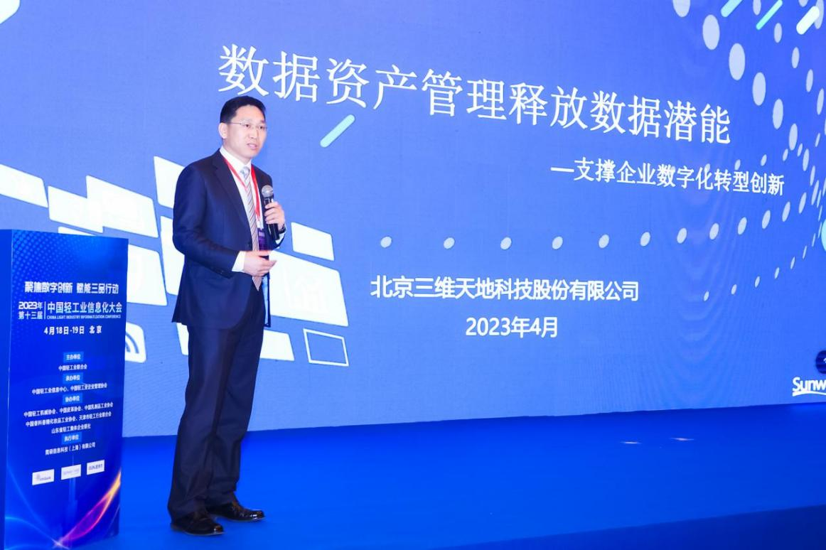 4月18-19日,由中國輕工業聯合會主辦,中國輕工業信息中心、中國輕工業企業管理協會承辦的2023年第十三屆中國輕工業信息化大會在北京成功召開。北京三維天地科技股份有限公司受邀參會并作主題演講。 三維天地副總裁曹朝輝受邀參會,并作《數據資產管理釋放數據潛能——支撐企業數字化轉型創新》主題演講。 他表示,隨著數據成為新的生產要素,“數據資產化”已經成為了企業發展的重要組成部分。數據要素不僅能提升傳統單一要素生產效率、優化傳統要素資源配置效率、替代傳統要素的投入和功能,還能在商機洞察、降本增效、風險管控與輔助決策等方面為企業數字化轉型保駕護航。但企業要正確有力地利用好數據,就需要做好數據管理體系的構建。 數據治理是數字化轉型的根基,是對數據資產的管理形式權力和控制的活動集合,它不僅是一套用工具組合的產品級解決方案,更是從決策層到技術層,從管理制度到工具支撐,自上而下貫穿整個組織架構的完整鏈條,以期通過持續的評估、指導和監督,確保富有成效且高效的數據利用,促進組織協作和結構化決策,為企業創造價值。