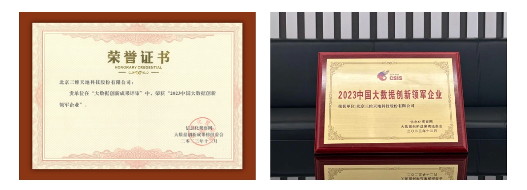 點亮數據新價值|三維天地榮獲2023中國大數據創新領軍企業