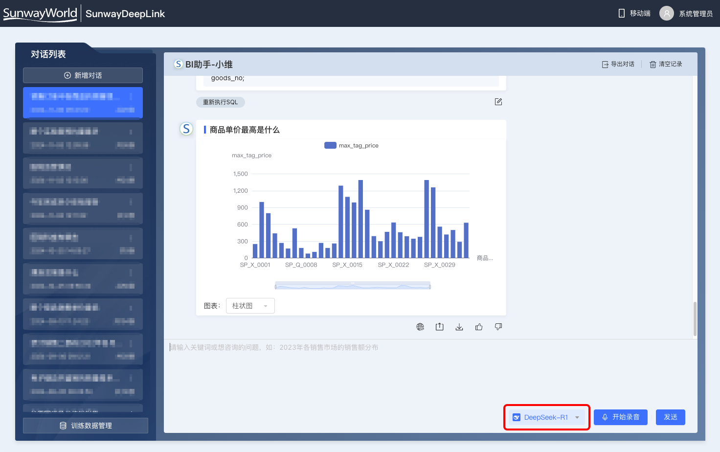 數(shù)據(jù)資產(chǎn),是企業(yè)數(shù)字化轉(zhuǎn)型的核心驅(qū)動(dòng)力。然而,面對(duì)海量數(shù)據(jù),如何高效分析、挖掘價(jià)值,如何便捷管理、安全利用,成為企業(yè)面臨的共同挑戰(zhàn)。 告別復(fù)雜操作,對(duì)話式分析:只需像聊天一樣說(shuō)出需求,SunwayDeepLink即可自動(dòng)生成可視化報(bào)表,洞察數(shù)據(jù)奧秘,助企業(yè)領(lǐng)導(dǎo)輕松決策。 多維度數(shù)據(jù)洞察,一目了然:支持多種數(shù)據(jù)源接入,深度挖掘數(shù)據(jù)價(jià)值,多維度分析,助客戶精準(zhǔn)把握市場(chǎng)脈搏。 智能預(yù)測(cè),預(yù)見(jiàn)未來(lái)趨勢(shì):基于DeepSeek強(qiáng)大的計(jì)算推理能力,SunwayDeepLink可進(jìn)行數(shù)據(jù)預(yù)測(cè)和趨勢(shì)分析,助客戶搶占市場(chǎng)先機(jī)。 海量文檔,秒速定位:只需輸入關(guān)鍵詞,SunwayDeepLink即可快速定位目標(biāo)文檔,告別繁瑣的搜索過(guò)程。 智能摘要,快速掌握要點(diǎn):自動(dòng)生成文檔摘要,提取關(guān)鍵信息,助客戶快速了解文檔內(nèi)容,提高閱讀效率。 多語(yǔ)言翻譯,溝通無(wú)界限:支持多種語(yǔ)言互譯,打破語(yǔ)言障礙,助客戶輕松與全球伙伴溝通協(xié)作。 數(shù)據(jù)無(wú)縫對(duì)接,打破信息孤島:SunwayDeepLink通過(guò)接入DeepSeek-R1和DeepSeek-V3,與DeepSeek實(shí)現(xiàn)底層數(shù)據(jù)互通,打破系統(tǒng)壁壘,消除信息孤島,實(shí)現(xiàn)數(shù)據(jù)資產(chǎn)的統(tǒng)一管理和高效利用。 功能深度融合,釋放協(xié)同價(jià)值:SunwayDeepLink的ChatBI和ChatDOC功能與DeepSeek平臺(tái)深度集成,實(shí)現(xiàn)數(shù)據(jù)分析、文檔管理、流程審批等功能的無(wú)縫銜接,釋放協(xié)同價(jià)值,提升工作效率。 安全可靠保障,守護(hù)數(shù)據(jù)資產(chǎn):依托DeepSeek強(qiáng)大的安全防護(hù)體系,SunwayDeepLink為用戶提供全方位的數(shù)據(jù)安全保障,確保數(shù)據(jù)資產(chǎn)的機(jī)密性、完整性和可用性。 DeepSeek-R1加持,數(shù)據(jù)處理更高效:借助DeepSeek-R1強(qiáng)大計(jì)算推理能力,SunwayDeepLink的數(shù)據(jù)處理性能提升20%以上,即使面對(duì)海量數(shù)據(jù)也能游刃有余。 DeepSeek-V3賦能,分析預(yù)測(cè)更精準(zhǔn):憑借DeepSeek-V3強(qiáng)大的技術(shù)支撐,SunwayDeepLink能夠深度挖掘數(shù)據(jù)價(jià)值,充分整合各類信息資源,優(yōu)化數(shù)據(jù)分析流程與方法,使數(shù)據(jù)分析預(yù)測(cè)準(zhǔn)確率提升30%以上,為企業(yè)決策提供更堅(jiān)實(shí)、更可靠的依據(jù)。 三維天地推出的全新人工智能產(chǎn)品SunwayDeepLink,將成為新時(shí)期企業(yè)數(shù)據(jù)資產(chǎn)管理的得力助手,助力企業(yè)釋放數(shù)據(jù)價(jià)值,為企業(yè)數(shù)智化轉(zhuǎn)型保駕護(hù)航。