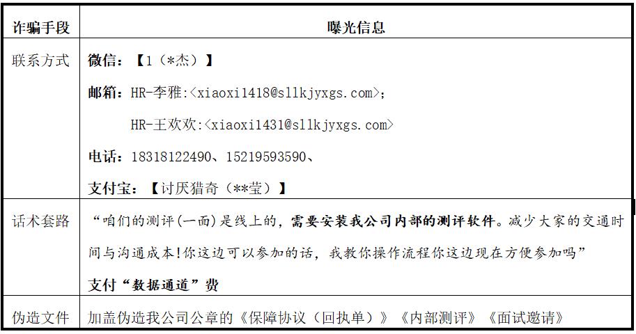近期,我公司發現有不法分子冒用我公司名義,通過微信、短信、郵件等非法手段,以“虛假招聘職位”為幌子,誘導求職者支付所謂的“數據通道”費、“安裝內部測評軟件”等進行詐騙。此類違法行為不僅嚴重侵害了廣大求職者的合法權益,也對我公司聲譽和社會形象造成了極其惡劣的影響。為了維護公眾利益、保障公司聲譽,我公司現發布此嚴正聲明: 以上信息均為詐騙分子偽造請廣大求職者提高警惕,切勿輕信!