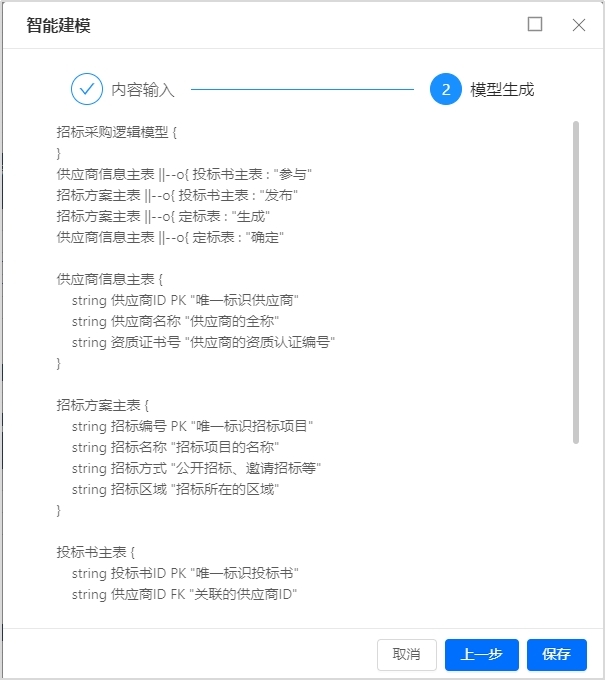 數(shù)據(jù)建模智能體核心邏輯在于“語義理解 + 自動化生成”,NLP 技術能深度解析業(yè)務需求的自然語言描述(如 “以供應商信息為基礎構建招投標的業(yè)務模型”),提取關鍵實體(招標方案、項目方、供應商)、屬性(投標類型、投標價、時間)與關系(招標項目——供應商的歸屬關系);