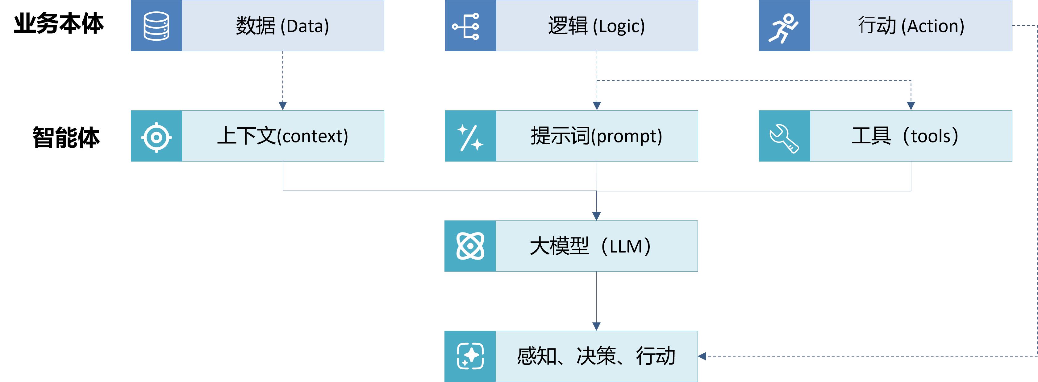 業(yè)務(wù)本體圍繞數(shù)據(jù)、邏輯和行動三個核心要素進(jìn)行構(gòu)建:
