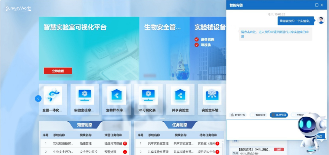 - 交互范式革新,操作化繁為簡(jiǎn):SunwayLink AI應(yīng)用開(kāi)發(fā)平臺(tái)深度融入省統(tǒng)籌業(yè)務(wù)協(xié)同平臺(tái),創(chuàng)新引入智能對(duì)話導(dǎo)航功能。用戶只需“動(dòng)動(dòng)口”,即可快速定位繁雜的業(yè)務(wù)菜單,極大簡(jiǎn)化操作指引,重新定義實(shí)驗(yàn)室業(yè)務(wù)系統(tǒng)的便捷交互新體驗(yàn)。