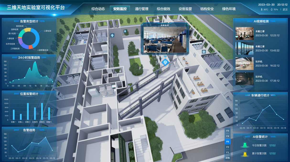 - 智慧安防感知監(jiān)管:智慧孿生平臺(tái)直接獲取門(mén)禁出入記錄及視頻監(jiān)控信息。融合計(jì)算機(jī)視覺(jué)與前沿AI算法,創(chuàng)新采用“數(shù)字孿生+實(shí)時(shí)視頻”雙通道監(jiān)控模式。系統(tǒng)智能識(shí)別實(shí)驗(yàn)室內(nèi)人員操作行為,對(duì)違規(guī)動(dòng)作(如不規(guī)范操作、危險(xiǎn)行為)進(jìn)行即時(shí)分析與預(yù)警,構(gòu)筑智能化主動(dòng)安全防護(hù)體系。